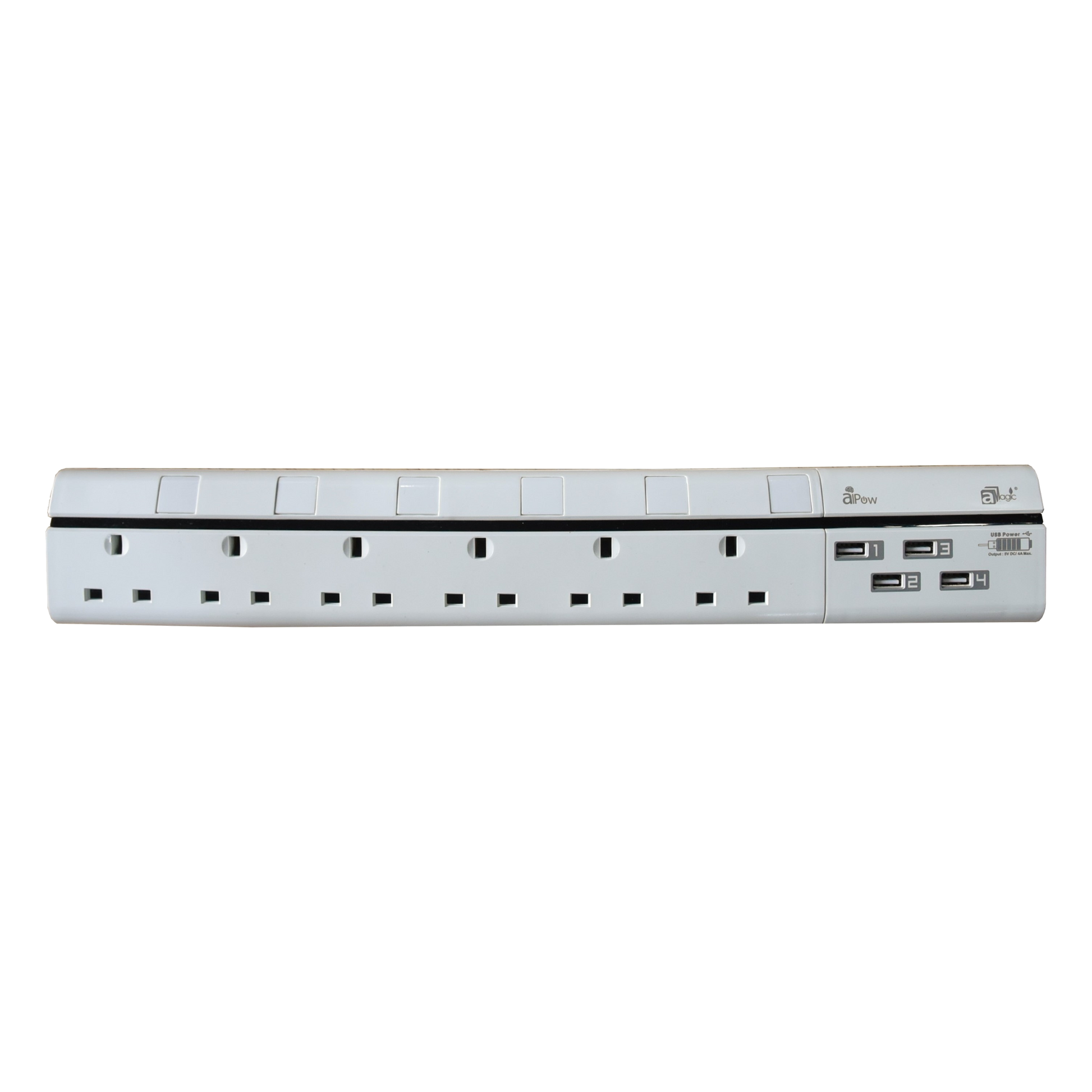 aMagic 6 gang 13 A Switched Socket w/ 4 USB aiPow Charging Port